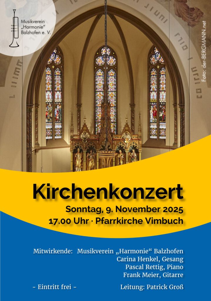 Nahezu sechsundzwanzig Jahre ist es schon her, seit wir in der Vimbucher Pfarrkirche „Sankt Johannes der Täufer“ unser letztes Konzert gegeben haben. Dass wir dieses Jahr nun mit einem Kirchenkonzert in unsere Pfarrkirche zurückkehren, freut uns ganz besonders.